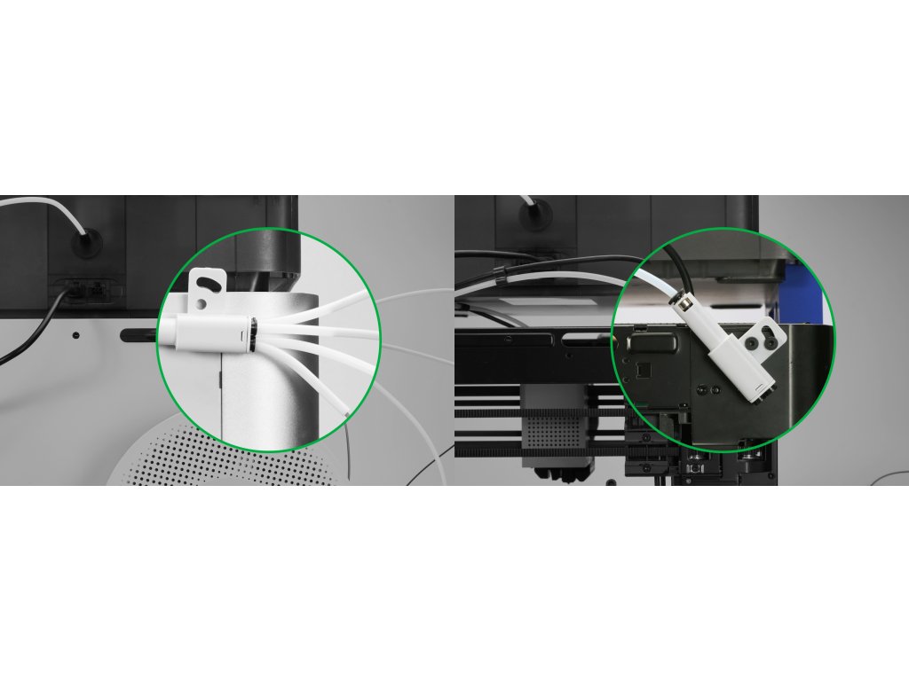 Nejčastěji se používá v kombinaci AMS + zadní držák cívky, který při použití vyžaduje výměnu PTFE trubiček vedouci do tiskárny.