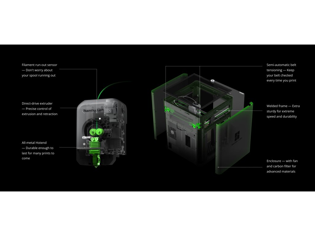 Funguje hned po vybalení. Nemusíte si s tím dělat hlavu, zkrátka jen vyberete tisk a tiskárna se postará o všechny kalibrace za Vás(Auto-Bed leveling, kompenzace vibrací). Vždy si užijete tisk bez starostí s Vaší P1S.