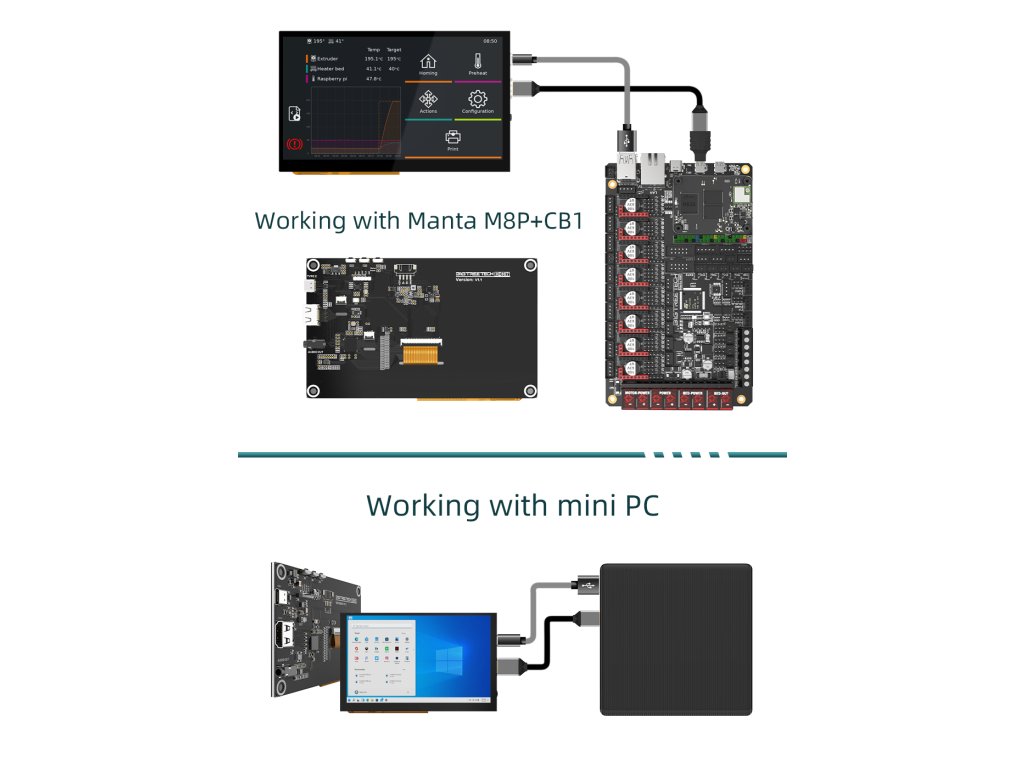 HDMI 5 a HDMI 7 byly vyvinuty technickým týmem BIQU speciálně pro uživatele 3d tiskáren používajících systém Klipper. Může pracovat s Raspberry Pi4, Manta M8P+CB1, Manta M4P+CB1 a dalšími mini PC.