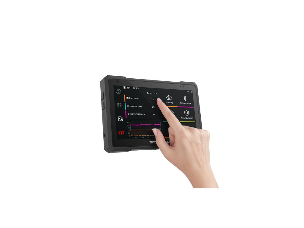 BIGTREETECH Pad 7 je 7palcový IPS dotykový tablet navržený speciálně pro nadšence 3D tisku. Dodává se s předinstalovanými funkcemi Klipper a KlipperScreen a je vybaven vysoce kvalitní 7palcovou dotykovou obrazovkou IPS. Není jen obrazovka Klipper, ale je to také mini-počítač. Vestavěná základní deska CB1 může být vyjmutá a můžete ji nahradit CM4 a udělat z ní minipočítač.