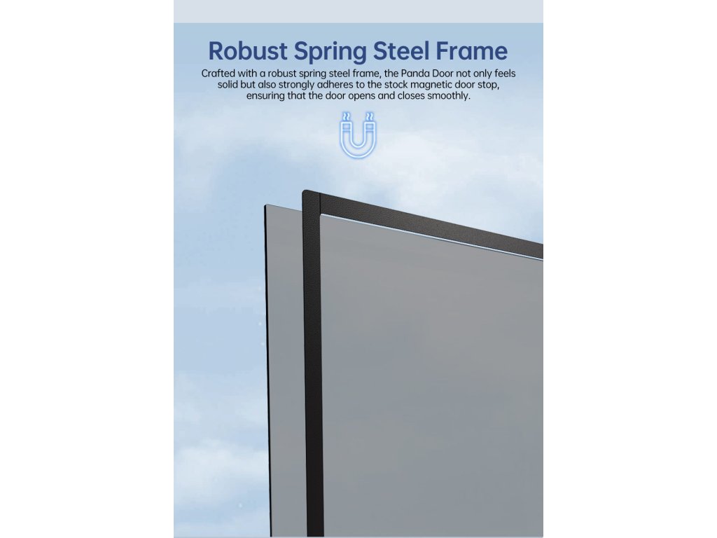 - Odolnost proti rozbití: Panda Door je vyroben z polykarbonátu, což je mnohem odolnější materiál než sklo. Nemusíte se tak bát, že by se dveře při nárazu nebo neopatrné manipulaci rozbily.