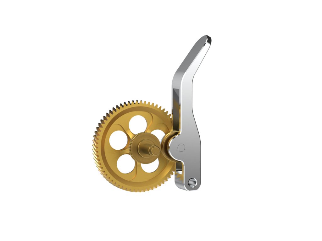 Sestava ozubeného kola extrudéru z kalené oceli je vnitřní součástí jednotky extrudéru . Zahrnuje hnané ozubené kolo a aktivní ozubené kolo, které spolupracují při podávání vlákna do hotendu.