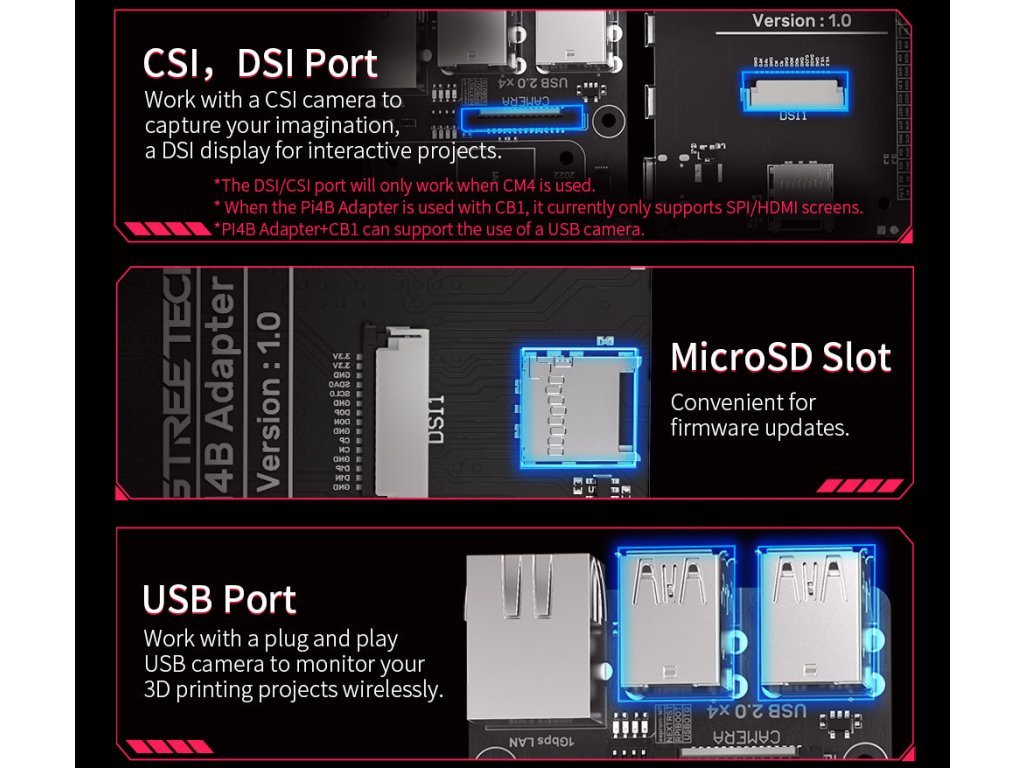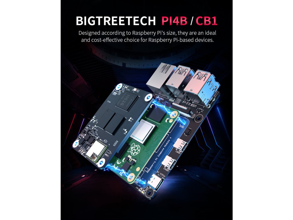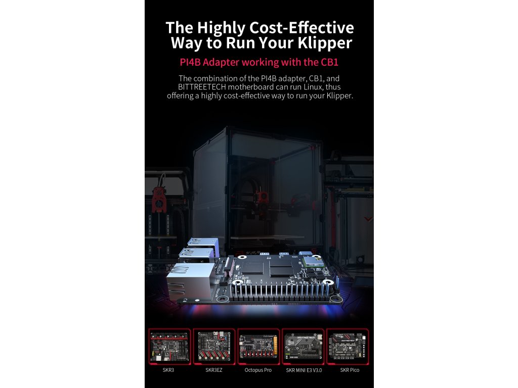 - PI4B musí být použit s CB1 nebo CM4, aby bylo možné spustit firmware Klipper.