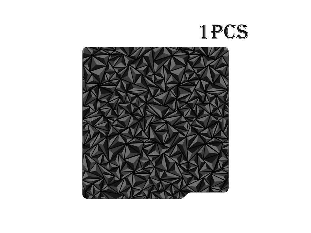 Beidseitiges Druckbett. Eine Seite ist eine texturierte PEI-Beschichtung. Die andere Seite ist eine Folie mit einem Muster nach Wahl.