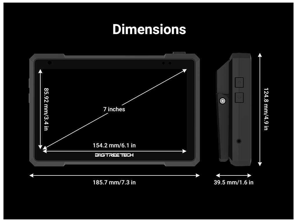 Das BIGTREETECH Pad 7 ist ein 7-Zoll-IPS-Touch-Tablet, das speziell für 3D-Druck-Enthusiasten entwickelt wurde. Es wird mit vorinstallierten Klipper- und KlipperScreen-Funktionen geliefert und verfügt über einen hochwertigen 7-Zoll-IPS-Touchscreen. Es ist nicht nur ein Klipper-Bildschirm, sondern auch ein Mini-Computer. Das integrierte CB1-Motherboard kann herausgenommen und durch ein CM4 ersetzt werden, um daraus einen Mini-Computer zu machen.