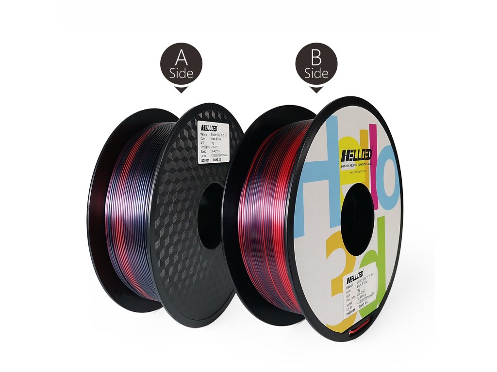 HELLO3D PLA SILK Bicolor Schwarz & Rot (Black & Red)