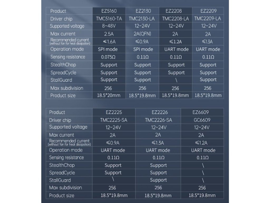 Easy Driver je nový ovladač od Bigtreetech. Díky jeho promyšlené konstrukci se ovladač snadno instaluje na základní desku. Konstrukce ovladače EZ odstranila piny, které se často při instalaci díky lidské chybě ohnou, což brání správné instalaci zařízení. Ovladače EZ se vyznačují dlouhou životností, a to díky technologii použité k jejich připojení k základní desce.