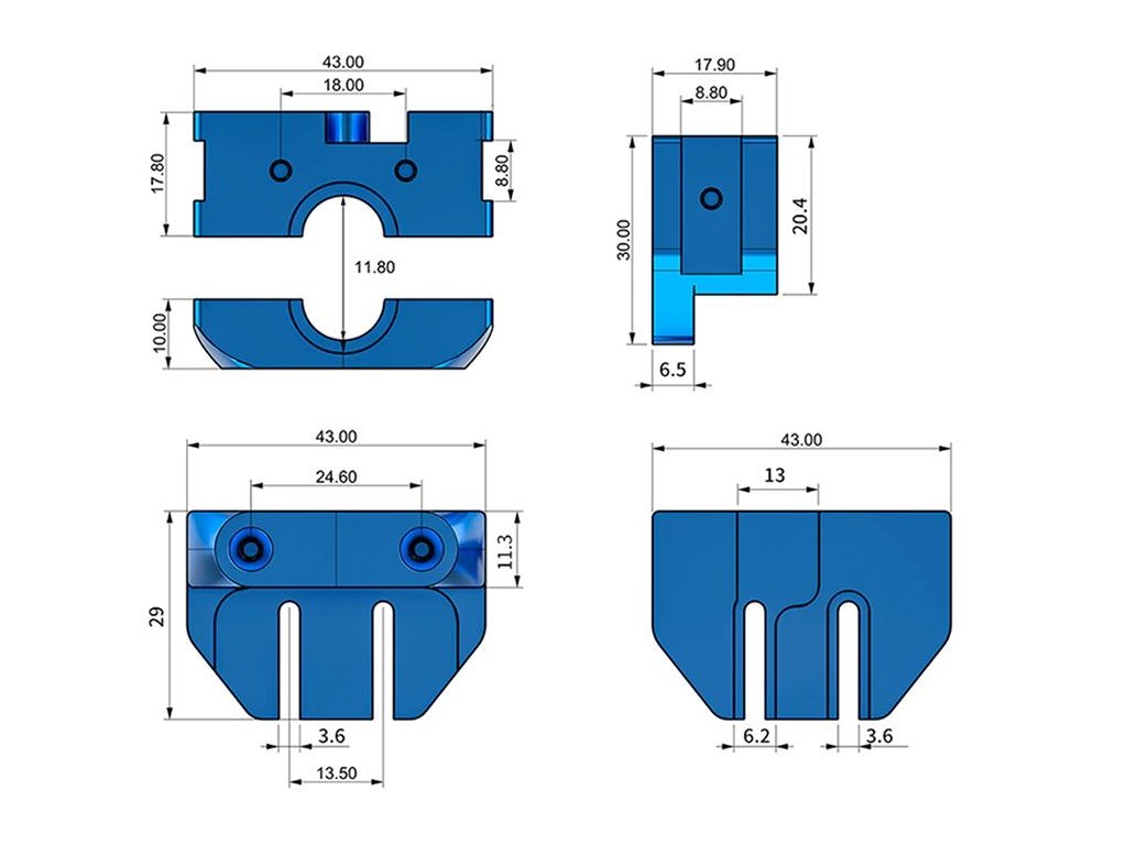 Hliníkový držák E3D hotendu je určený pro snadnou montáž na tiskárny Ender 3/Pro.
