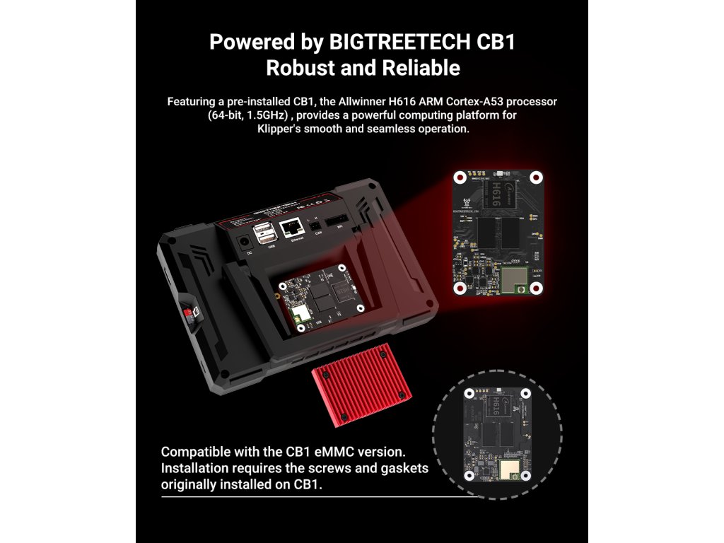 Replaceable Built-in CB1 Motherboard for Customization. We provide the CB1 OS Image, source code, and other files, so you can modify the code and install it on your 3D printer. Alternatively, you can choose to replace the CB1 with a CM4 and upgrade it to Linux, making it a mini-computer.