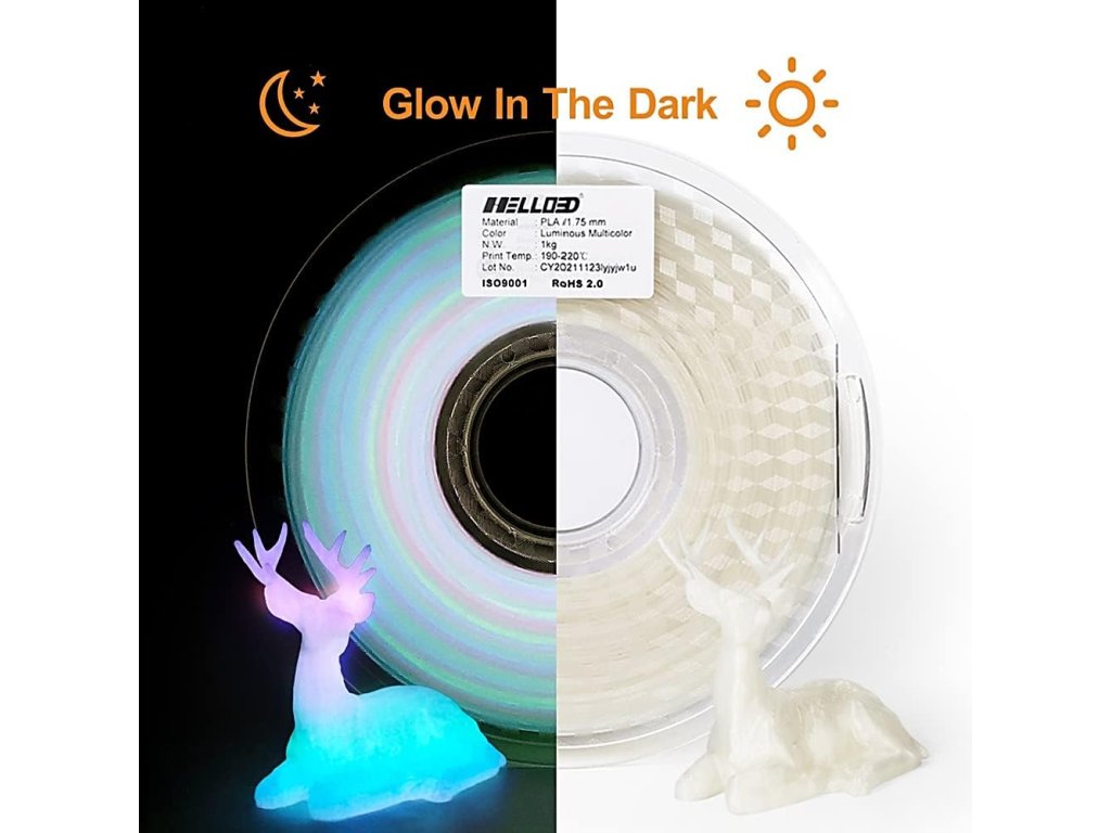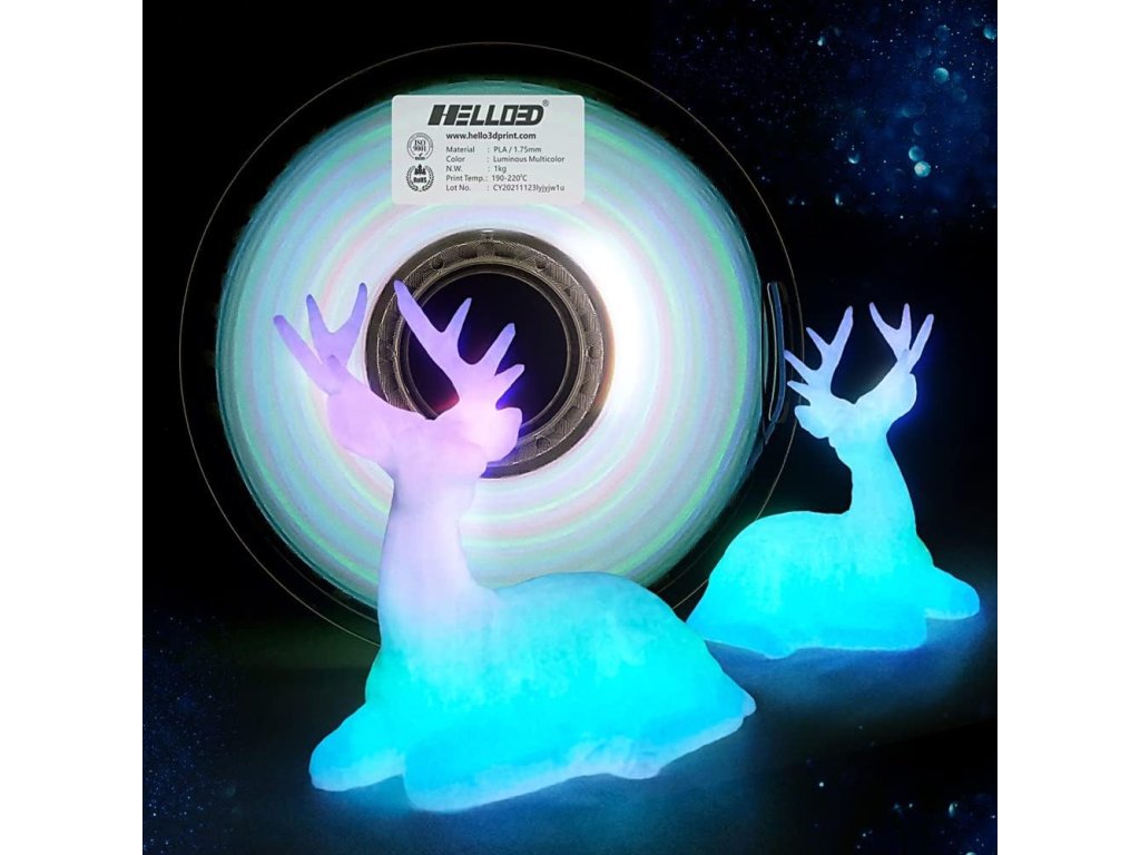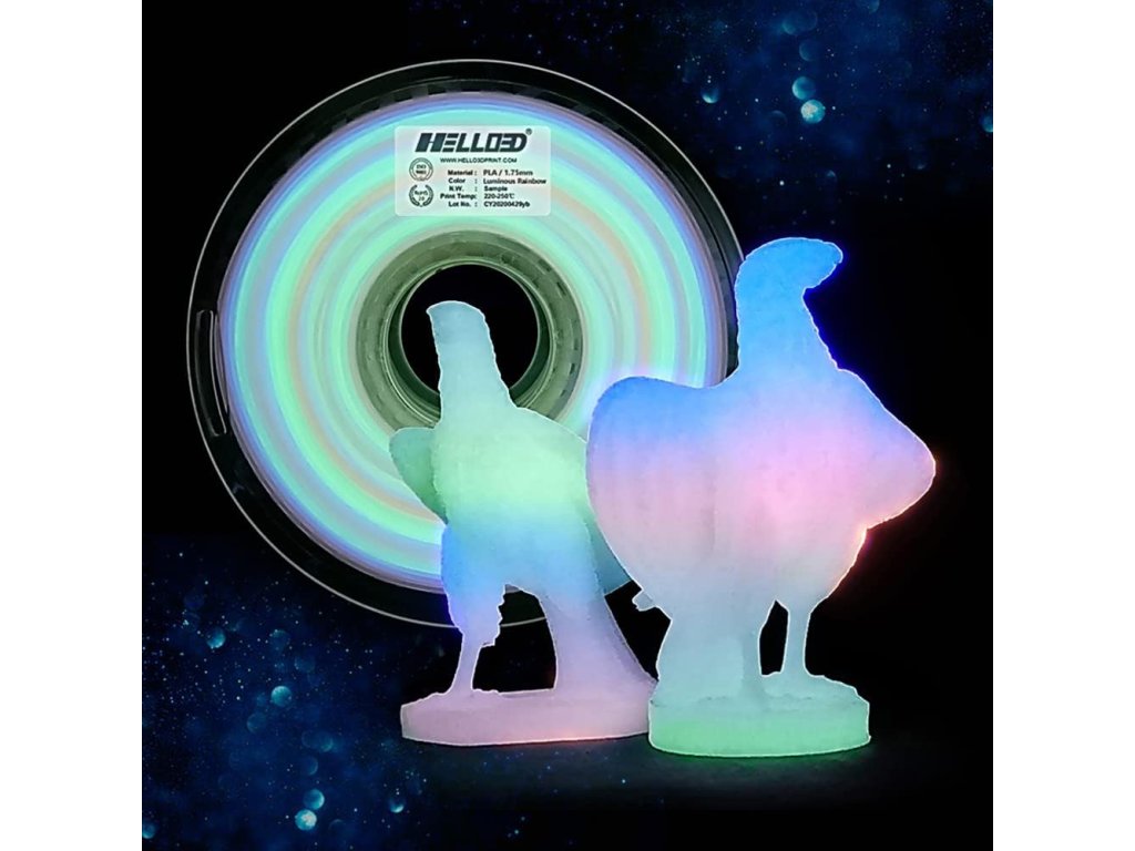 HELLO3D 1 kg PLA DUHA Svítící ve tmě (Luminous multicolor)