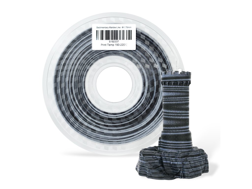 Filament má v řezu dvě barvy. Jedna strana je mramor a druhá černá