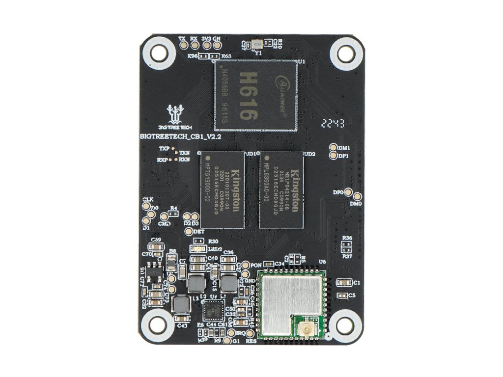 BIGTREETECH CB1 byl uveden na trh, aby poskytl řešení nedostatku Raspberry PI CM4. Vyvádí signály na základní desku prostřednictvím rychlého a pohodlného dvou 100pinového připojovacího headeru micro BTB, včetně 100M Ethernetu, HDMI atd. K dispozici je také vestavěná 2.4G WiFi.