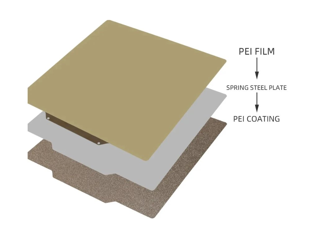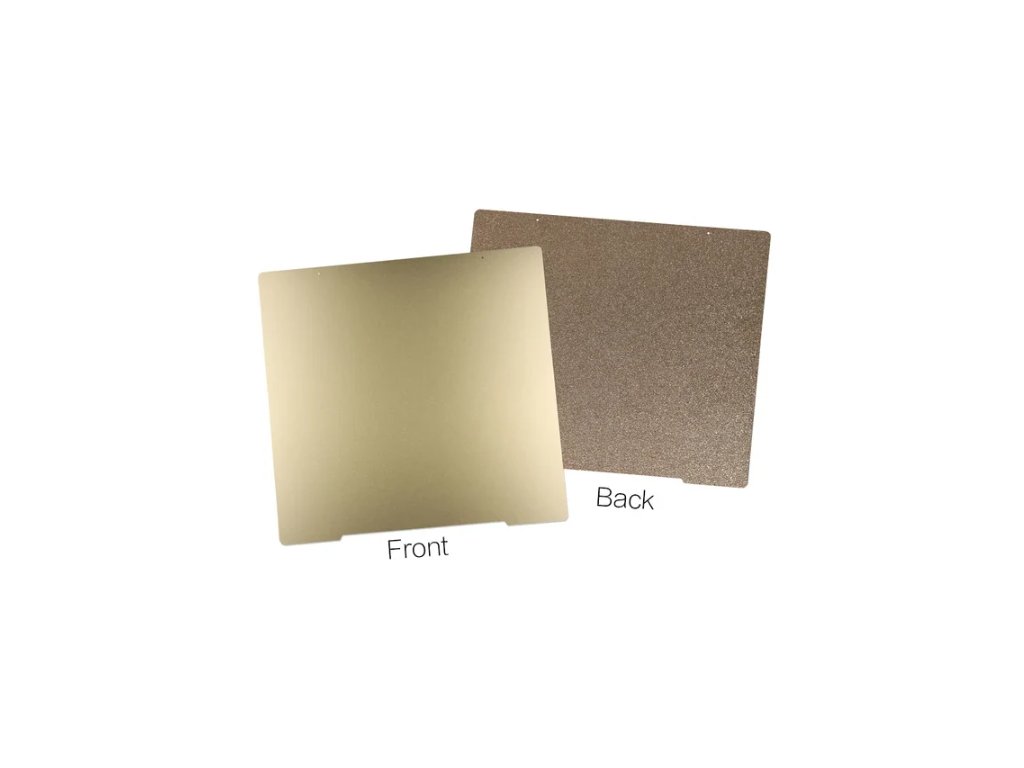 Oboustranná tisková podložka. Jedna strana je texturovaný nástřik PEI. Druhá strana je hladká fólie se vzorem dle výběru.