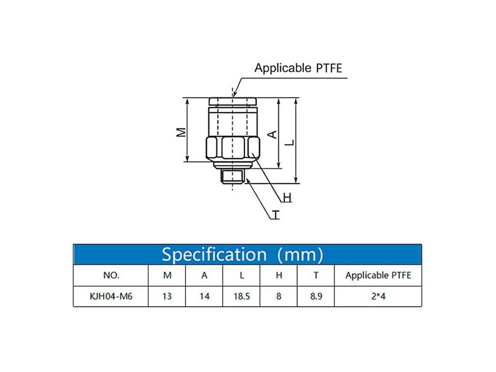 Pneumatická spojka KJH 04-M6 neprůchozí