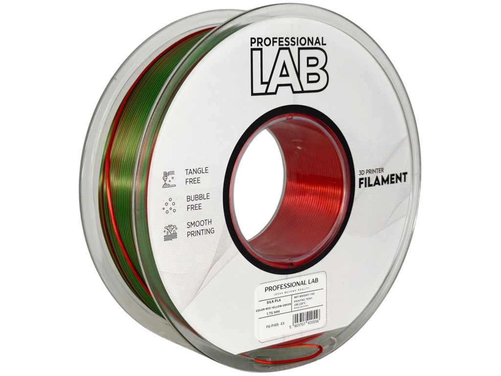 Prof. Lab SILK PLA TRI COLOR 1 kg ČERVENÁ-ŽLUTÁ-ZELENÁ (RED-YELLOW-GREEN)