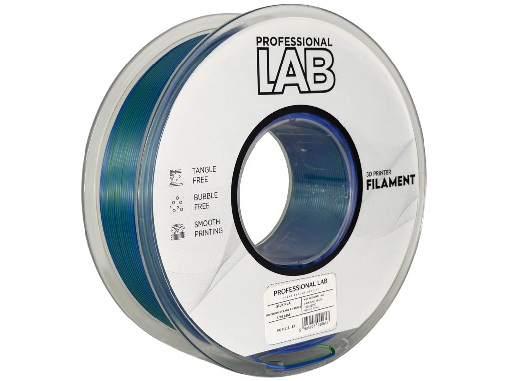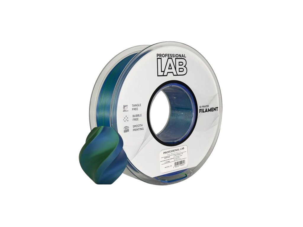Profesionální Prof. Lab Silk PLA Tri Color filament je spolehlivý a snadno tisknutelný materiál, který přináší ohromující tříbarevné lesklé efekty do každého vašeho 3D tisku. Je ideální pro 3D tiskárny všech úrovní – od začátečníků po zkušené uživatele. Zajišťuje hladký průběh tisku a vynikající kvalitu povrchu modelů s unikátním vizuálním efektem, který se dynamicky mění se strany pohledu a dodává tiskům luxusní hedvábný lesk.