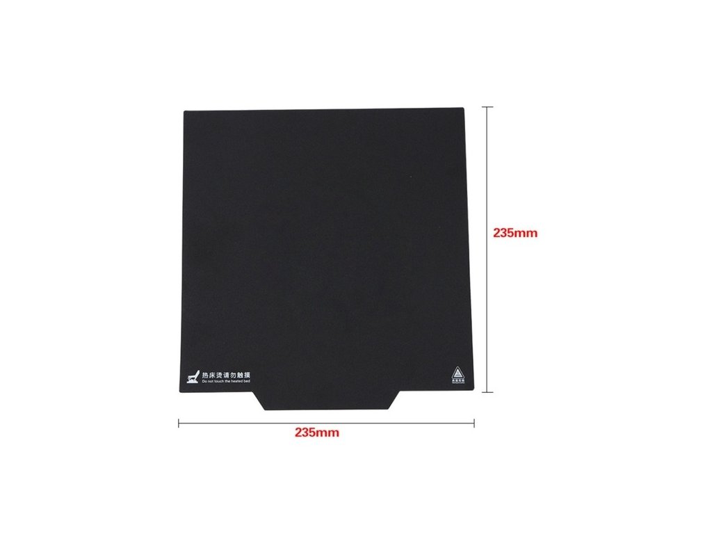 Velikost podložky je 235x235 mm je vhodná pro 3D tiskárny Ender 3 a pod., ale je možné si podložku nůžkami či nožem zmenšit dle vlastní potřeby.