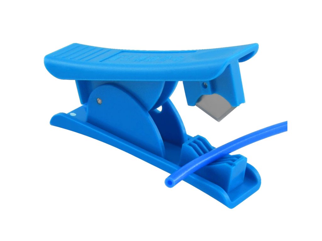 Řezačka slouží pro rovné uřezání PTFE trubiček, protože křivé uřezání může způsobit ucpávání hotendu.