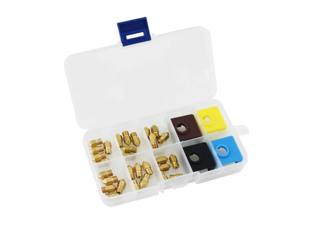 Sada 30 trysek a 4 silikonových krytů MK8 v přehledném plastovém boxu.
