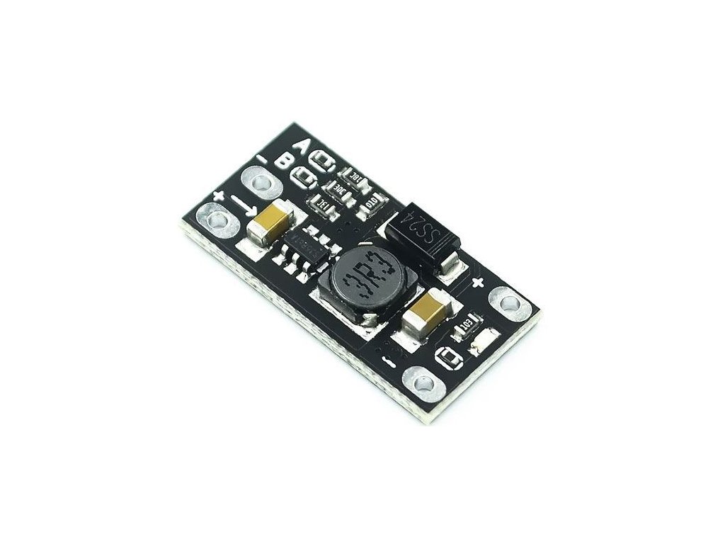 Jednoduchý DC-DC step-up měnič napětí, vhodný pro napájení projektů z baterií. Modul umožňuje 4 různé výstupy podle toho, jak jsou zkratovány plošky A a B: