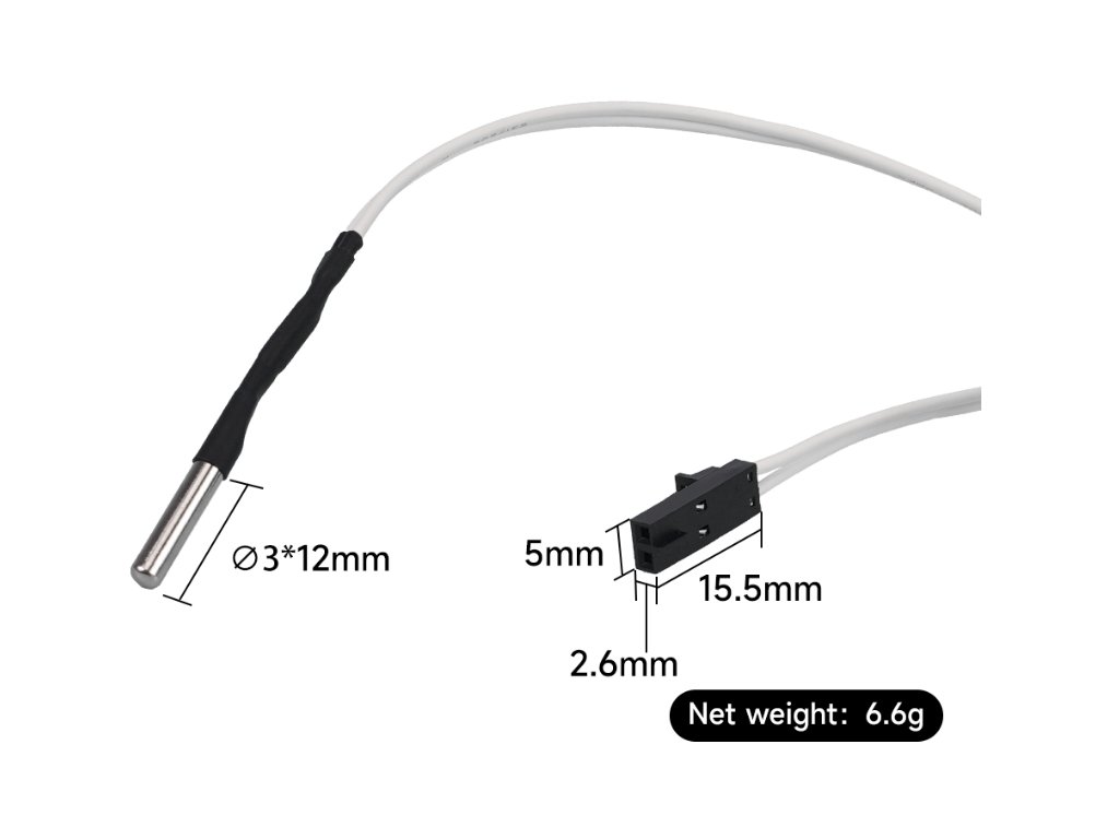 Teplotní čidlo (termistor) HT-NTC100K (válcové pouzdro) s koncovkou pro tiskárny Prusa