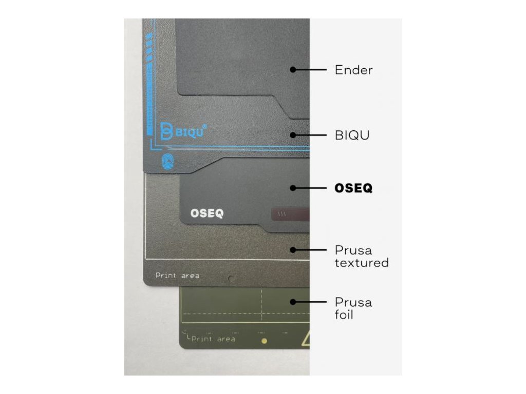 Oboustranný, magnetický, ocelový 3D tiskový plát českého výrobce OSEQ. Ohebný plát má sametově hladký originální práškový povrch ULTEM™ (PEI) pro vysokou přilnavost.