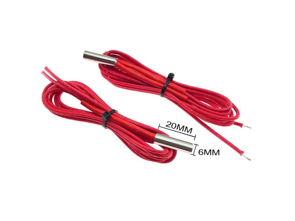 Topné těleso pro hotend sloužící k zahřívání trysky. Těleso má průměr 6 mm a délku 20 mm.