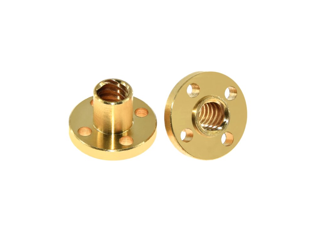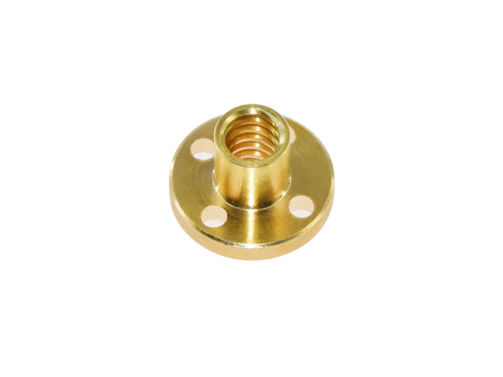 Trapézová matice T8 pro trapézový šroub o průměru 8 mm se stoupáním 8 mm.
