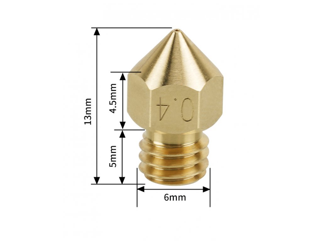 Tryska MK8 se závitem M6 vhodná pro tiskárny Eder 3/Pro, CR-10 apod. tiskárny s MK8 tryskami.