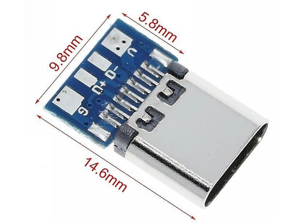 Konektor USB-C s vývody na jednotlivé piny. Vhodné například pro připojení kabelu.